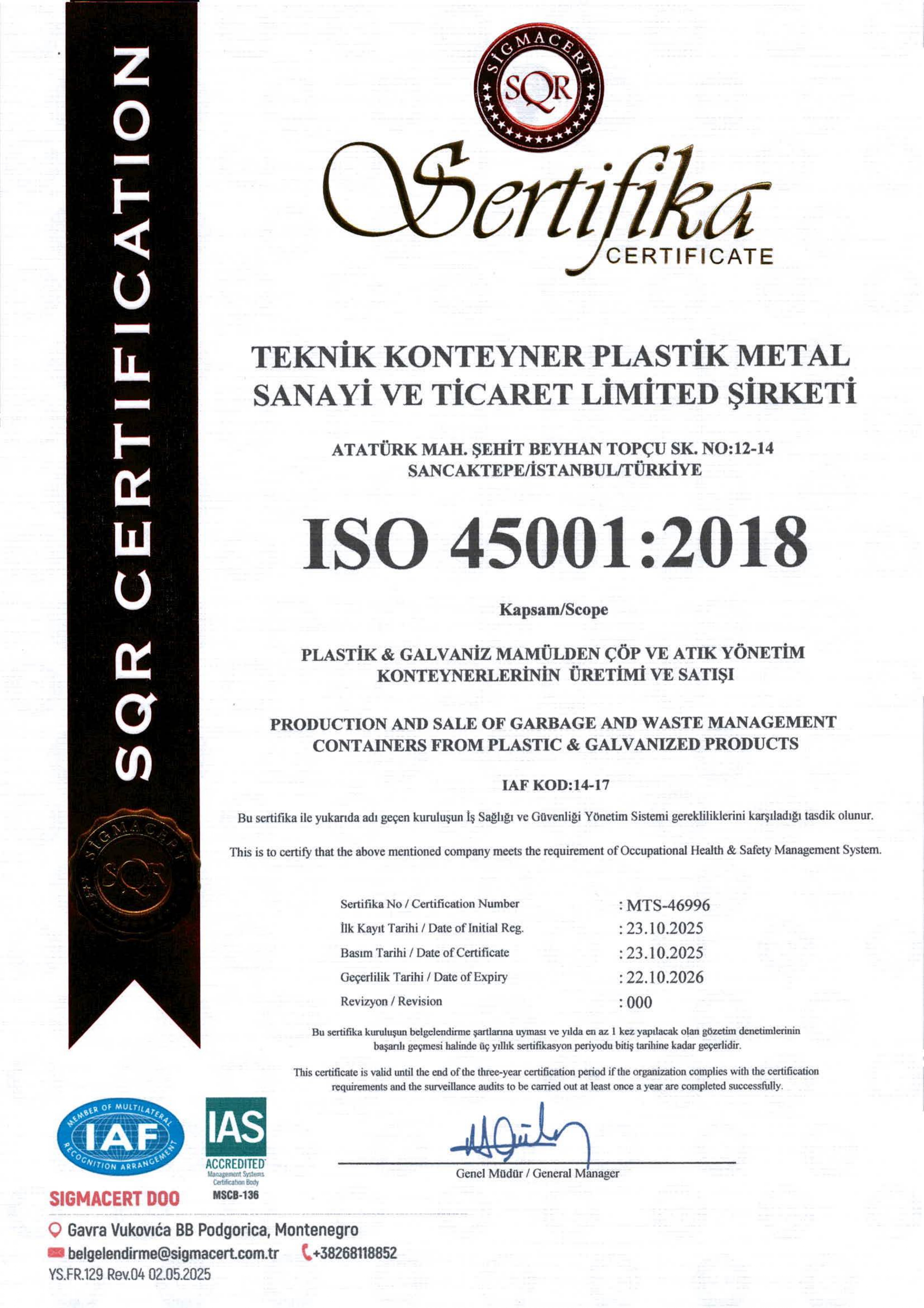 All certificates and documents related to the products of Teknik Konteyner are regularly monitored within the scope of national and international standards, and their validity is sustainably maintained. For any further details, please feel free to contact us.