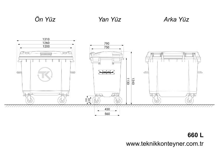 660 Litre Plastik Çöp Konteynerlerimiz TEKNİK KONTEYNER güvencesinde birinci sınıf ürün kalitesi ile üretilmektedir.