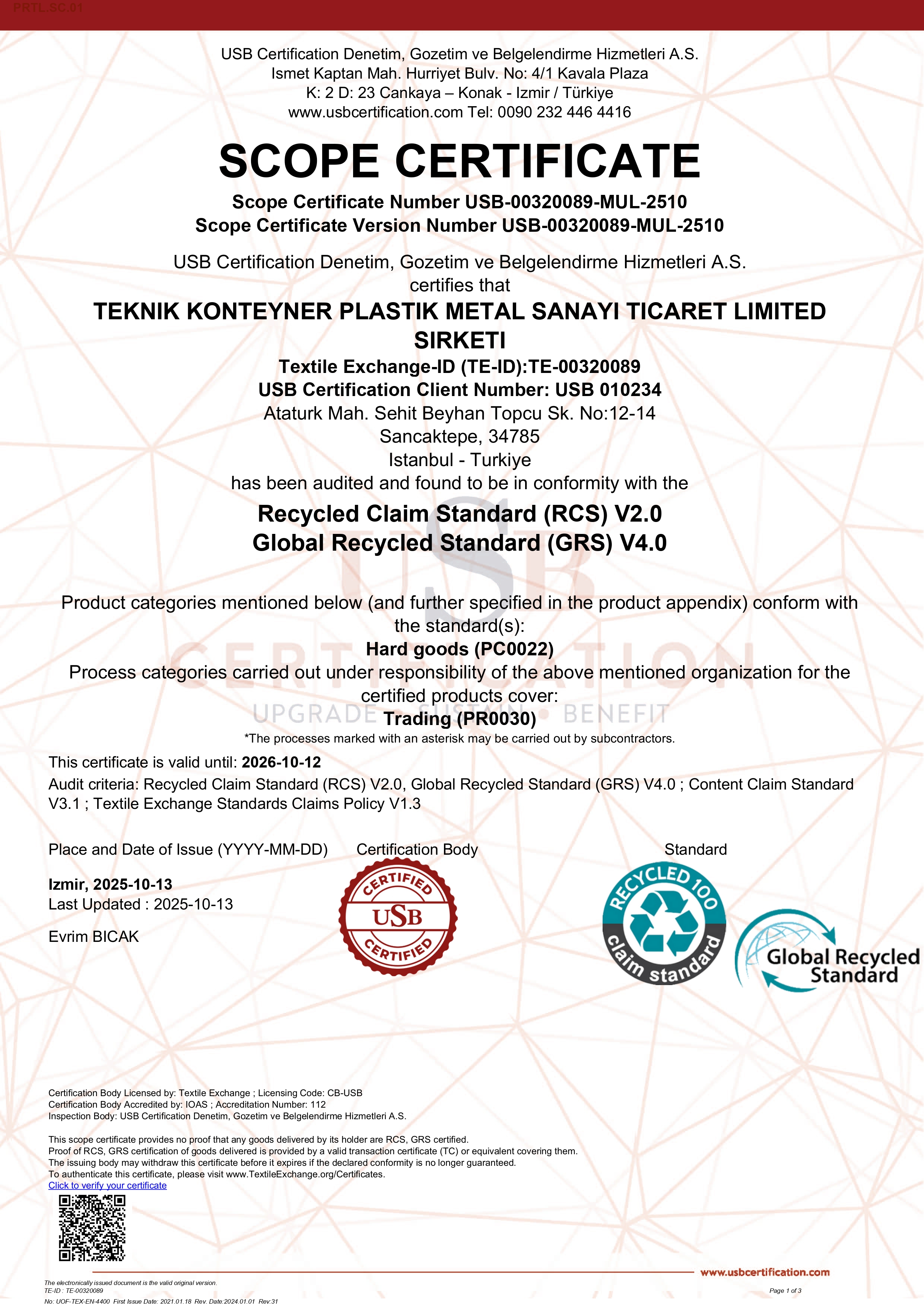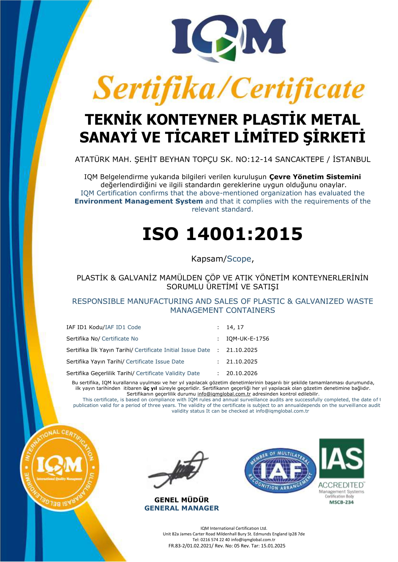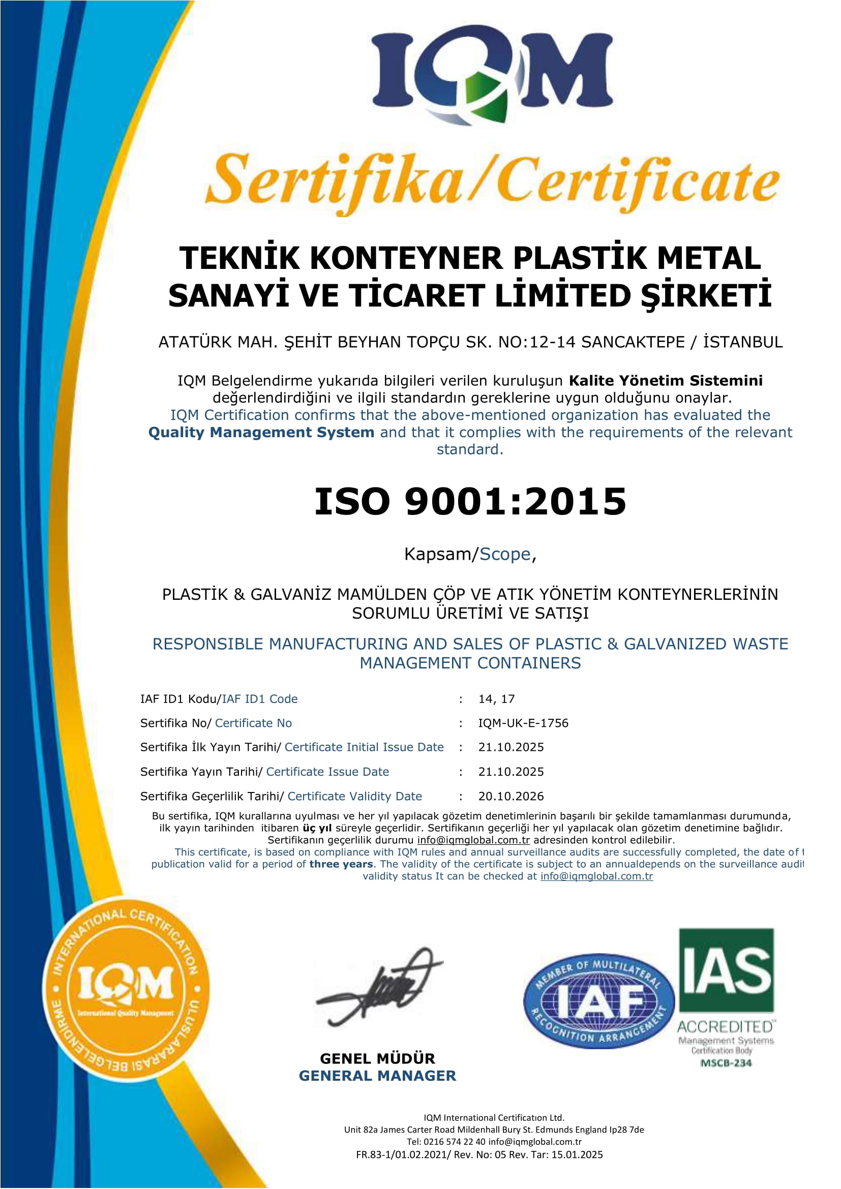 All certificates and documents related to the products of Teknik Konteyner are regularly monitored within the scope of national and international standards, and their validity is sustainably maintained. For any further details, please feel free to contact us.