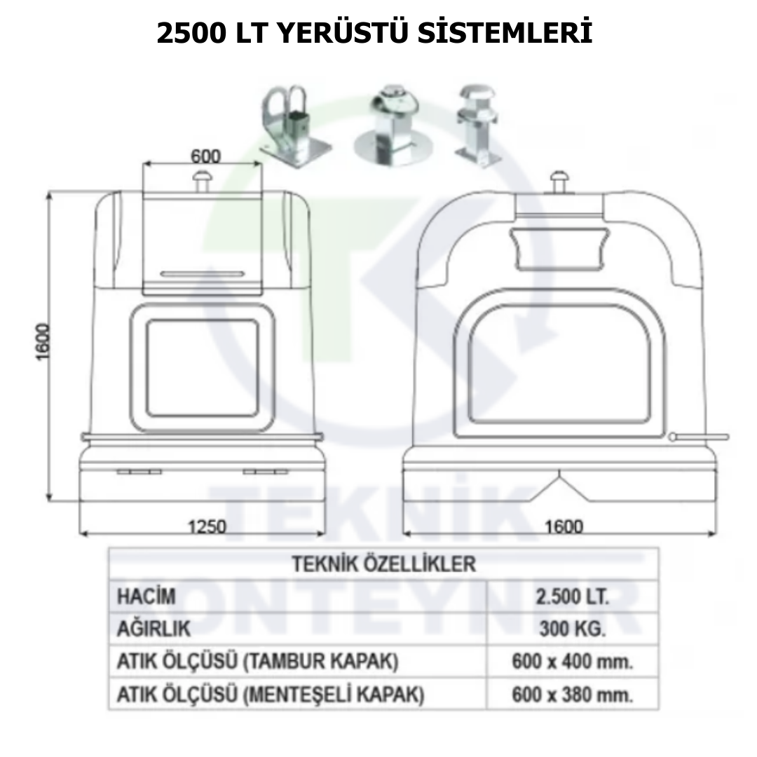 Above ground container 2500 LT. garbage collection will have owners. The container body will be at least 1250×1600 and 1600 mm in size.