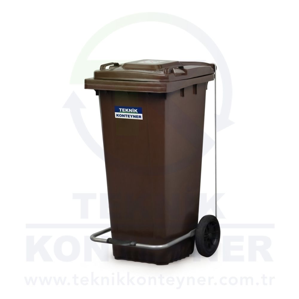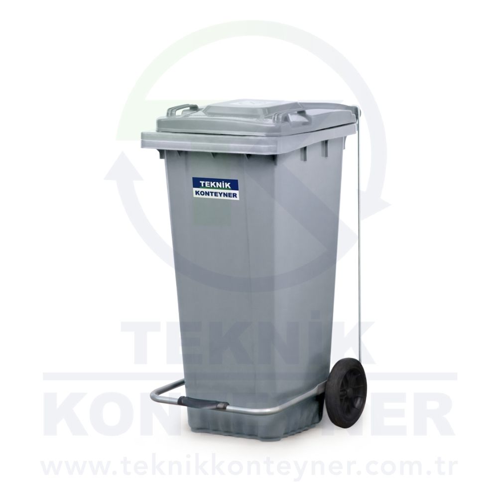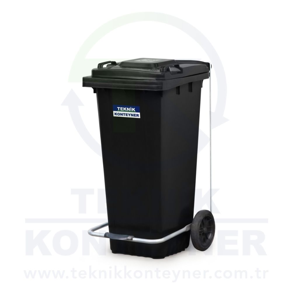 Plastic Waste Bin with Pedal 120 Liter You can find all 2 wheeled plastic garbage bins, trash bins in Teknik Konteyner in Istanbul/Turkiye.