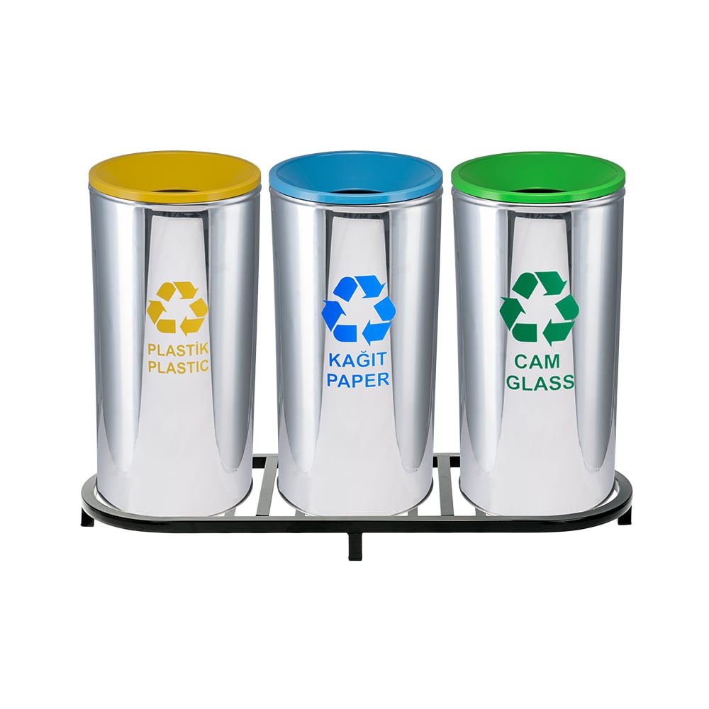 Zero Waste Bins: Height 60 cm Diameter 30 cm 430 Quality Stainless Steel Stand Height 65 cm Stand Width 103.5 cm Stand Depth 36 cm