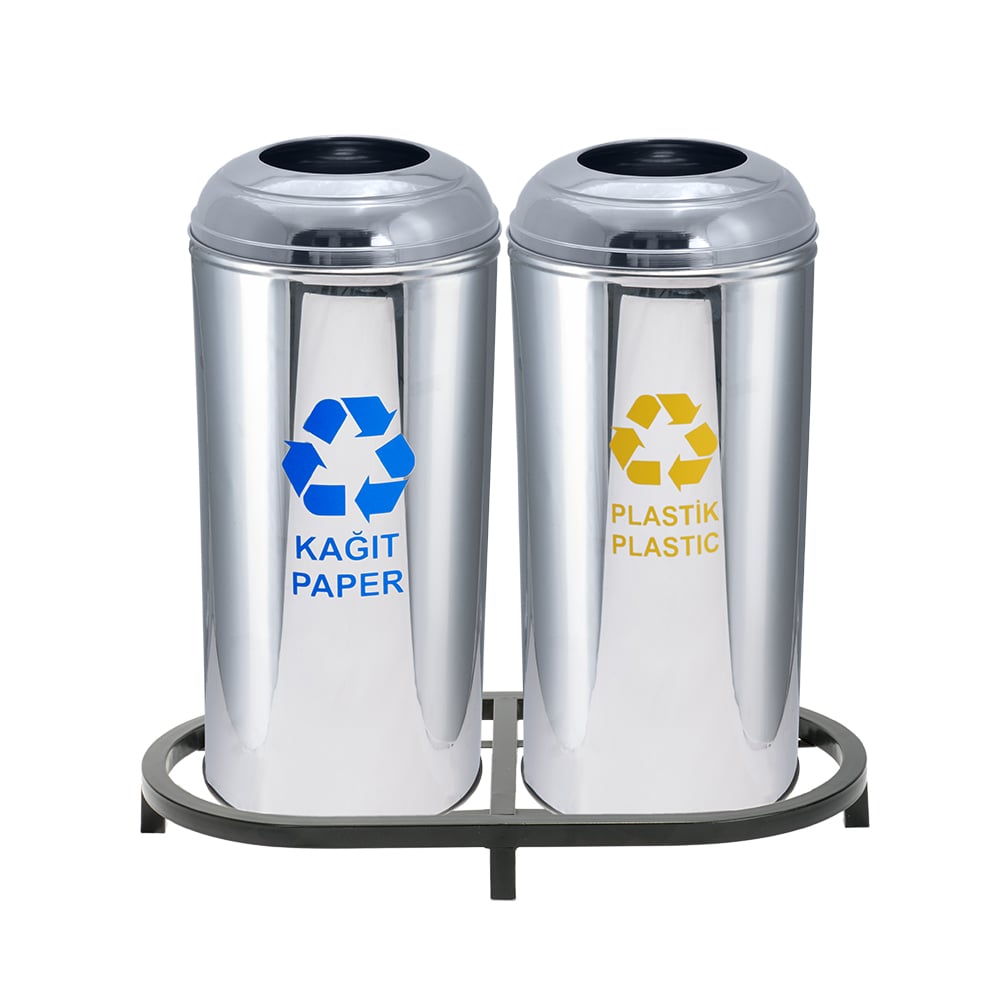 Sıfır Atık Kutuları: Yükseklik 68 cm Çap 30 cm 430 Kalite Paslanmaz Çelik Stand Yüksekliği 73 cm Stand Genişliği 69.5 cm Stand Derinliği 36 cm