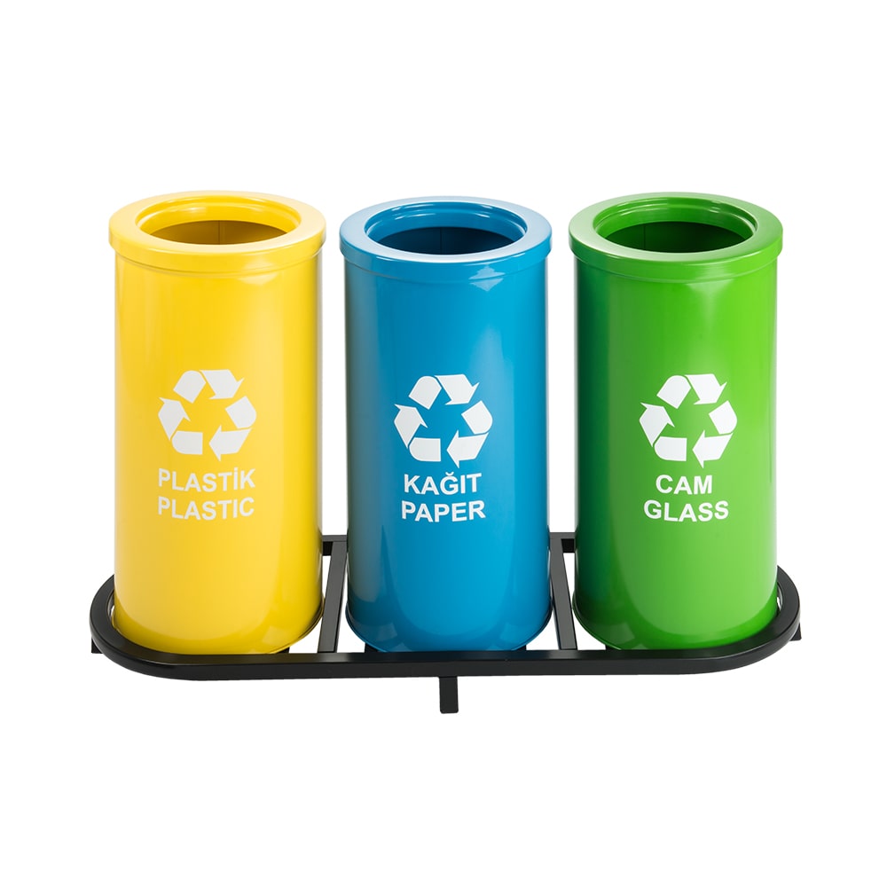 Zero Waste Boxes: Height 60 cm Diameter 30 cm Electrostatic Painted Stand Height 66 cm Stand Width 103.5 cm Stand Depth 35 cm