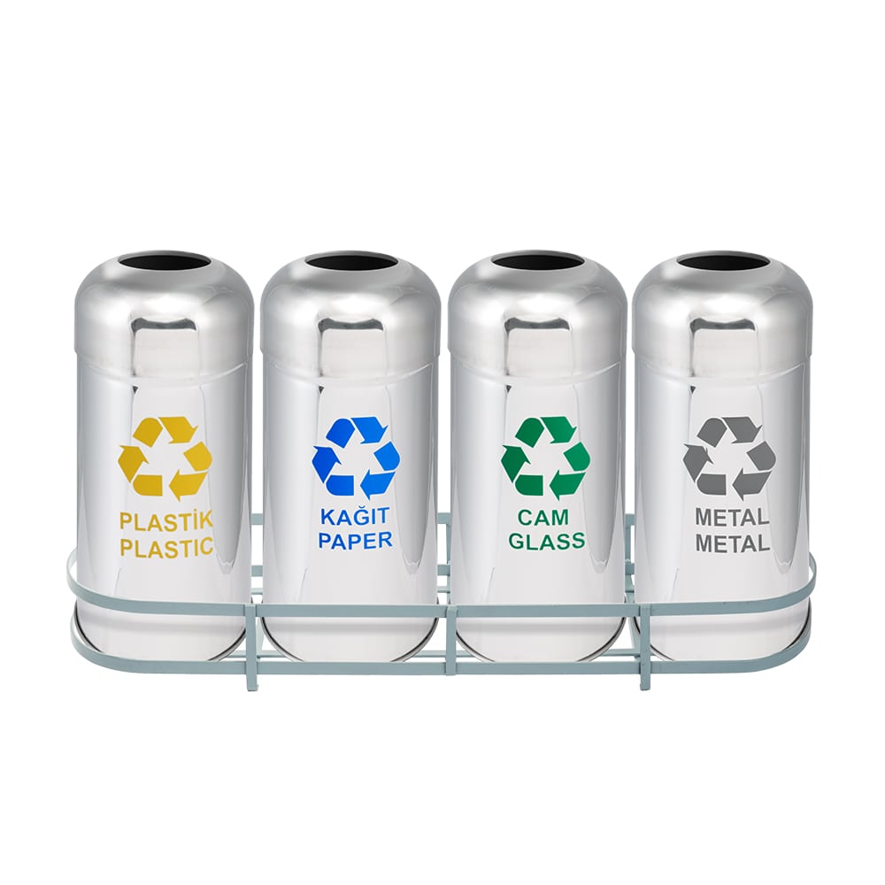 Zero Waste Bins: Height 78 cm Diameter 36 cm 430 Quality Stainless Steel Stand Height 81 cm Stand Width 148.5 cm Stand Depth 39.5 cm