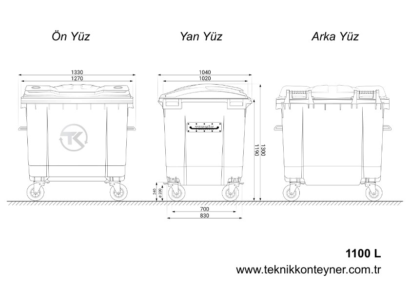 1100 Litre Plastik Çöp Konteynerlerimiz TEKNİK KONTEYNER güvencesinde birinci sınıf ürün kalitesi ile üretilmektedir.
